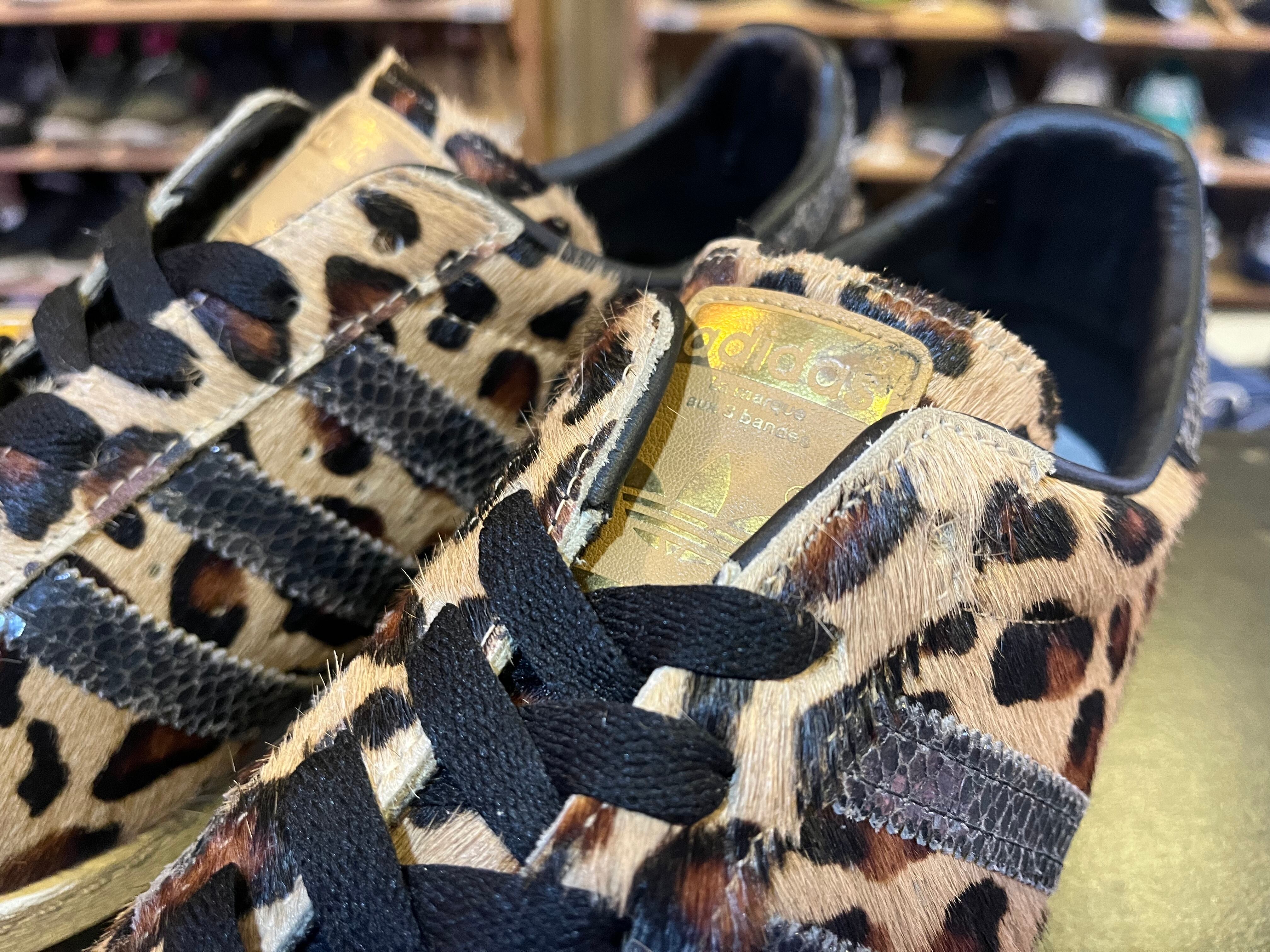 原宿のセレクトショップ『KINETICS』の別注スーパースター。アッパーはハラコ素材にレオパードプリントと非常に凝ったデザイン。