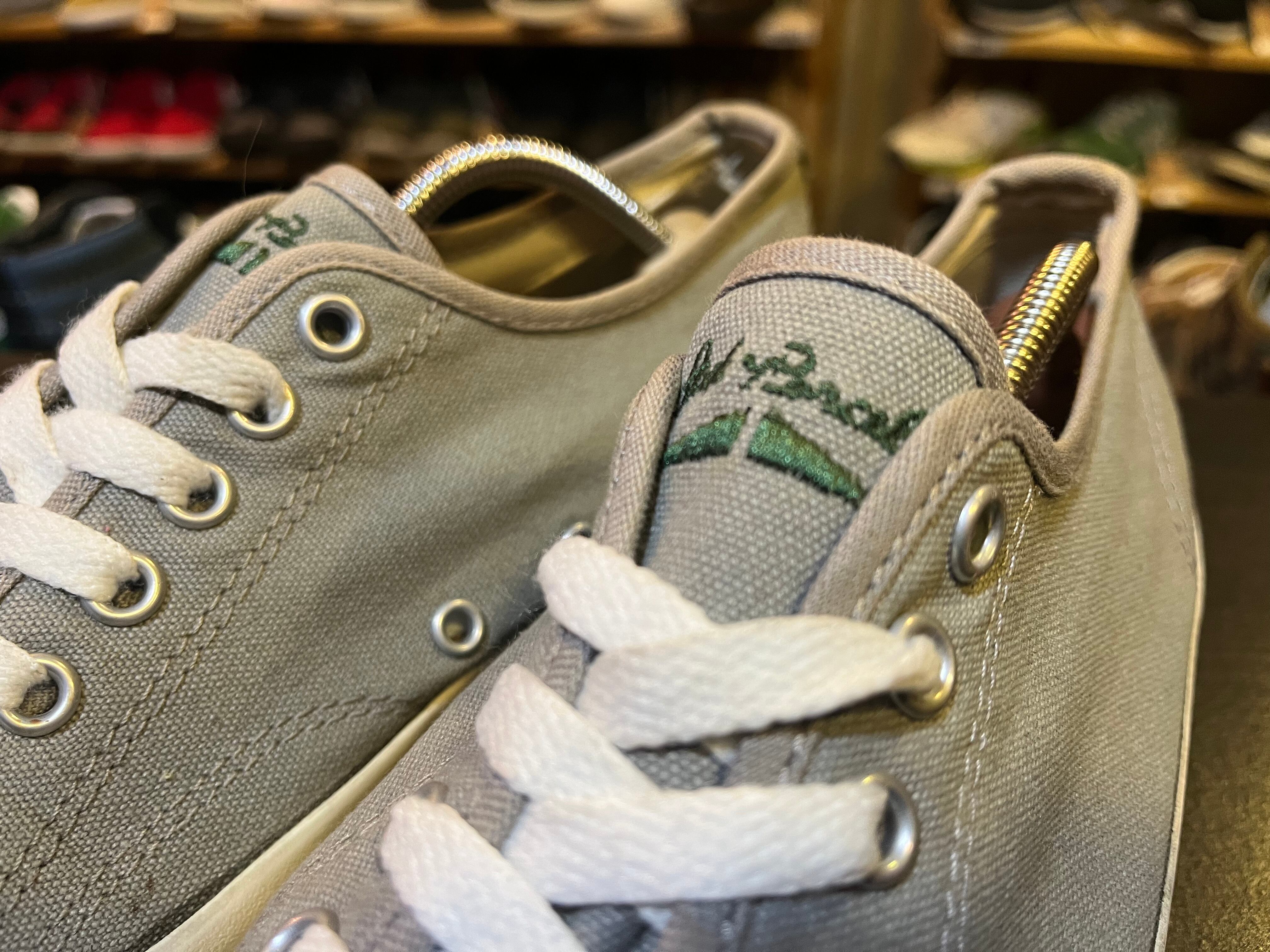 グレーベースにシュータンのロゴ、ソール裏にグリーンのアクセントが効いたジャックパーセルです。